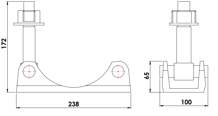 Mordaza RPM-A. Utilizados para la fijación de los vibradores RPM 6000. Realizados en acero soldable para la colocación directa en estructuras metálicas y/o encofrados.